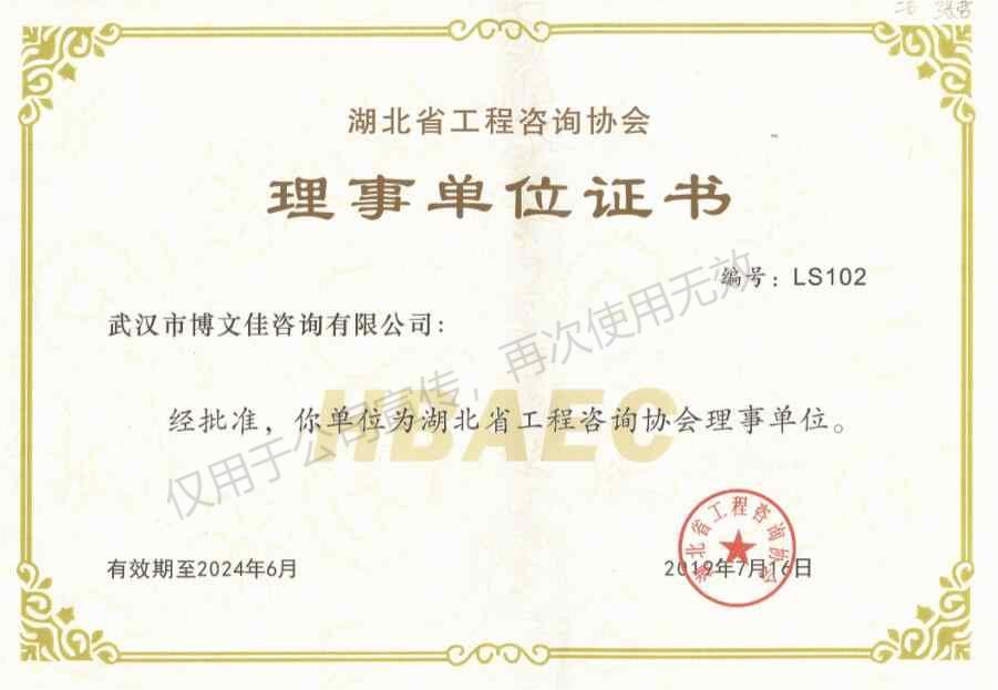 • 湖北省工程咨詢協會理事單位證書