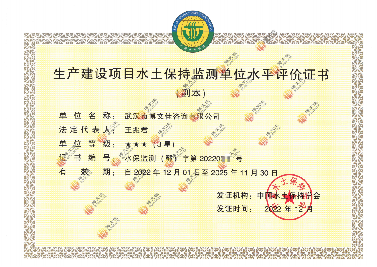 • 生產建設項目水土保持監測單位水平評價證書