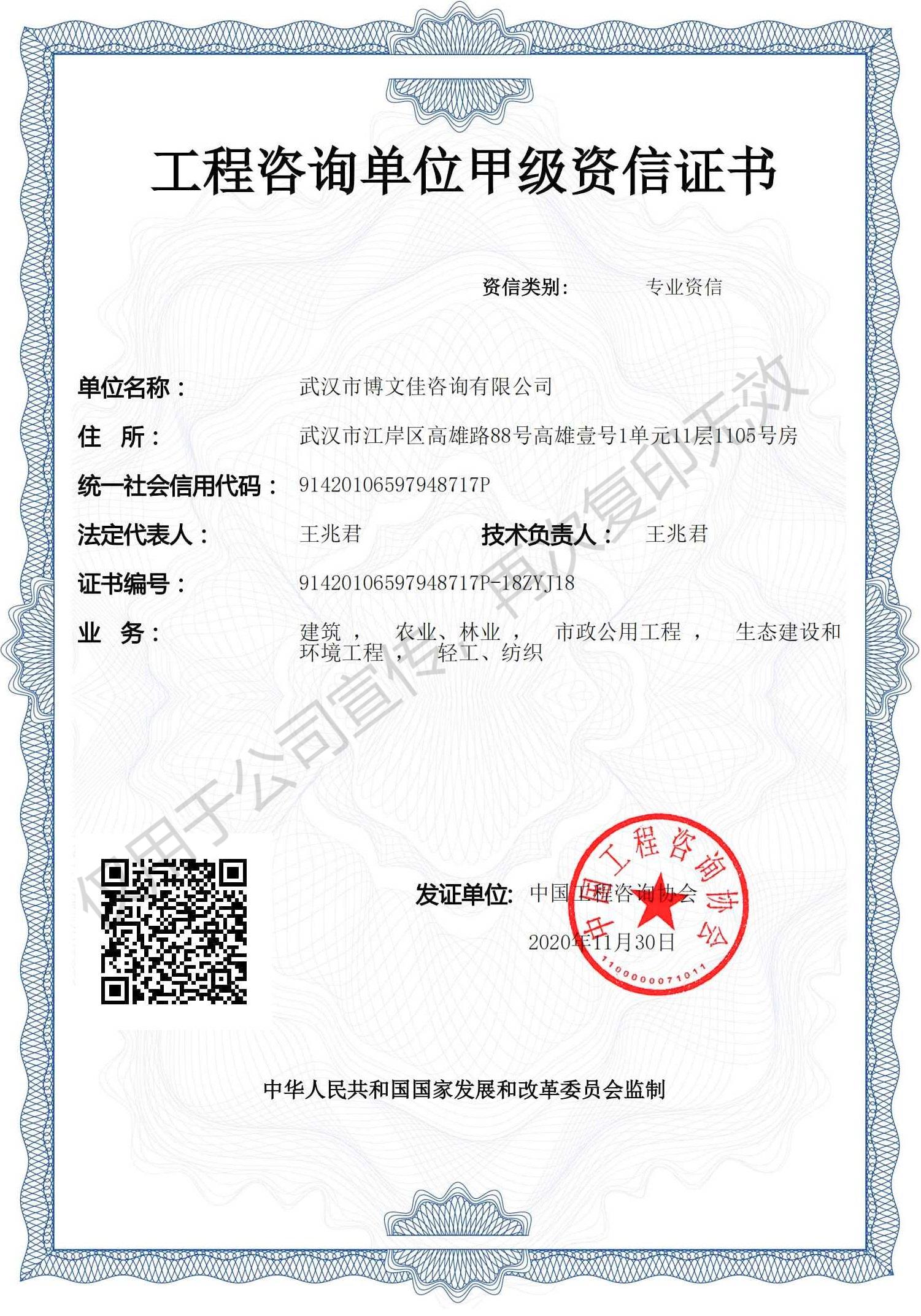 • 工程咨詢單位甲級資信證書