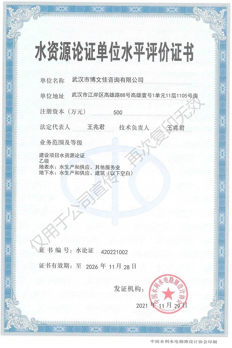• 水資源論證單位水平評價證書